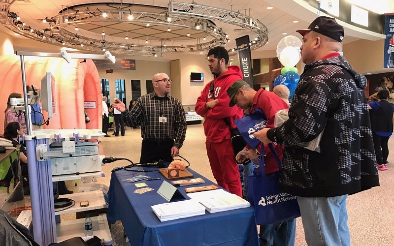 People learn about colon cancer at a health fair in Allentown, Pennsylvania. At the fair, research team members shared study results. (Courtesy of Melanie Johnson, Lehigh Valley Health Network)