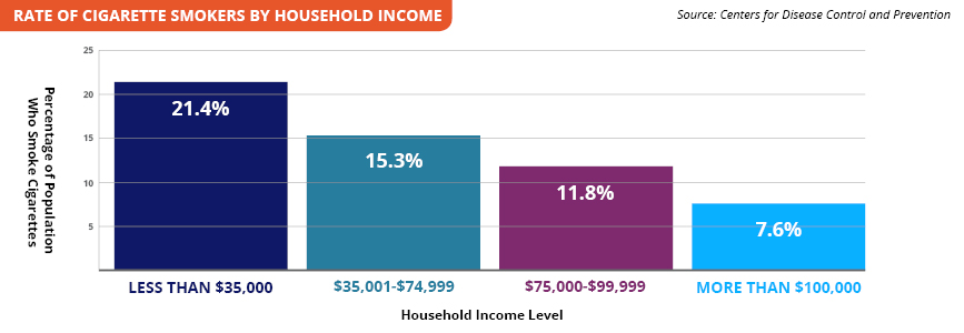 But that still leaves more than 34 million Americans using tobacco. And as with many health issues, underserved populations—including groups defined by race, ethnicity, comorbid health conditions, and low socioeconomic status—have shown markedly less improvement. The Centers for Disease Control and Prevention notes that more than 30 percent of Americans living below the poverty line smoke cigarettes.