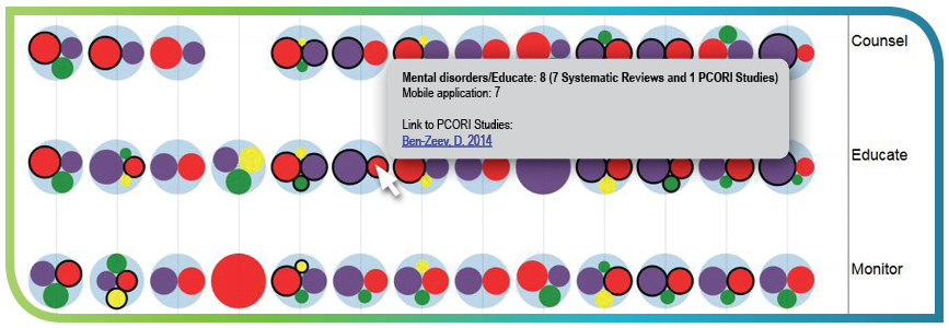Meanwhile, the mobile health maps are helping PCORI understand how our funded research portfolio of mobile health projects are addressing this topic area, and helping us better understand what evidence gaps still exist.