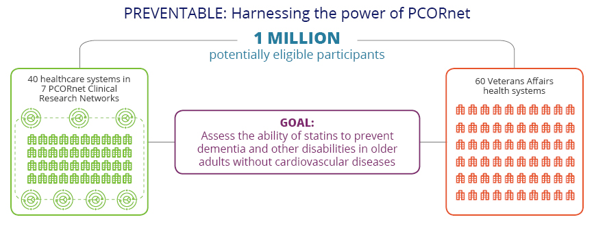 Today, the National Institutes of Health announced that PREVENTABLE, a new $90 million study assessing statins’ abilities to prevent dementia and other disabilities in older adults without cardiovascular disease, will take advantage of PCORnet®, the National Patient-Centered Clinical Research Network, to conduct this important research more efficiently.