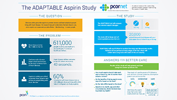 The study, called ADAPTABLE (Aspirin Dosing: A Patient-centric Trial Assessing Benefits and Long-term Effectiveness), will compare the benefits and harms of a low- and regular-strength daily dose of aspirin in patients diagnosed with heart disease. It is the first demonstration project to be conducted through PCORnet, the National Patient-Centered Clinical Research Network, which PCORI is developing to enhance the nation’s capacity to conduct much-needed health outcomes studies more quickly and efficiently, less expensively, and with greater potential impact than is now possible.