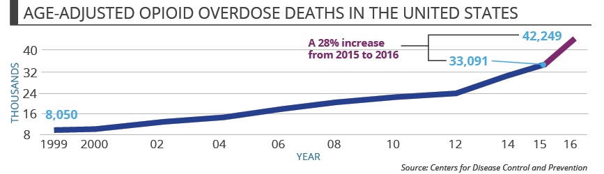 More than 42,000 Americans died of opioid overdoses in 2016, a 28 percent increase from 2015. This death toll contributed to a decline in the overall life expectancy in the United States for the second year in a row, according to statistics released December 21 by the Centers for Disease Control and Prevention.