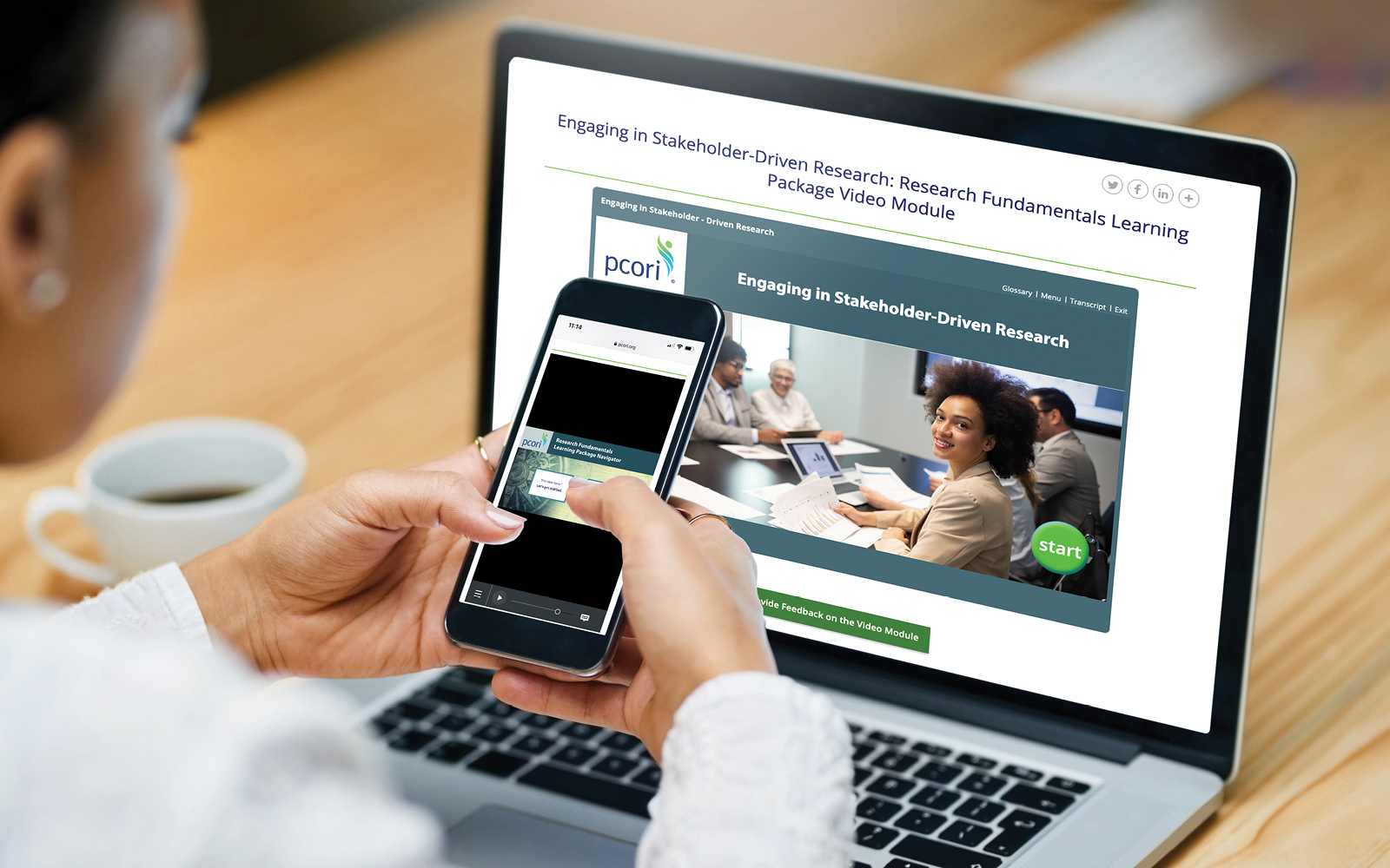 The Research Fundamentals tool is available for free on PCORI’s website. It provides the flexibility to access the content on demand. In addition to five modules that cover the stages of the research process, it also includes an interactive PDF that introduces the user to patient-centered outcomes research and how it differs from traditional research, and a video-based module that that features patients, clinicians and members of the PCORI healthcare community describing engagement in stakeholder-driven research. The navigator allows the user to explore the materials contained in the training to help decide what might be most useful.