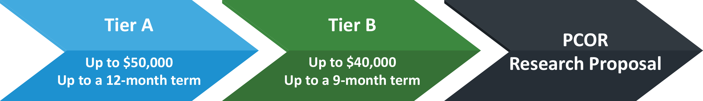 The redesigned first tier, Tier A, supports the development of research partnerships as they work together to identify a CER question—or series of questions—that are important to patients, researchers, and other healthcare stakeholders. The second tier, Tier B, helps research partnerships refine CER questions and use them to craft an application for CER study funds.