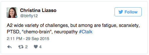 | Cancer side effects and symptoms | Sep. 29, 2015 | #ctalk | |
