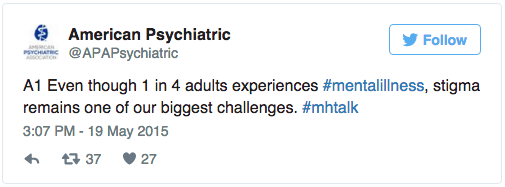One of the tweets from our May 2015 Twitter chat on mental health care.