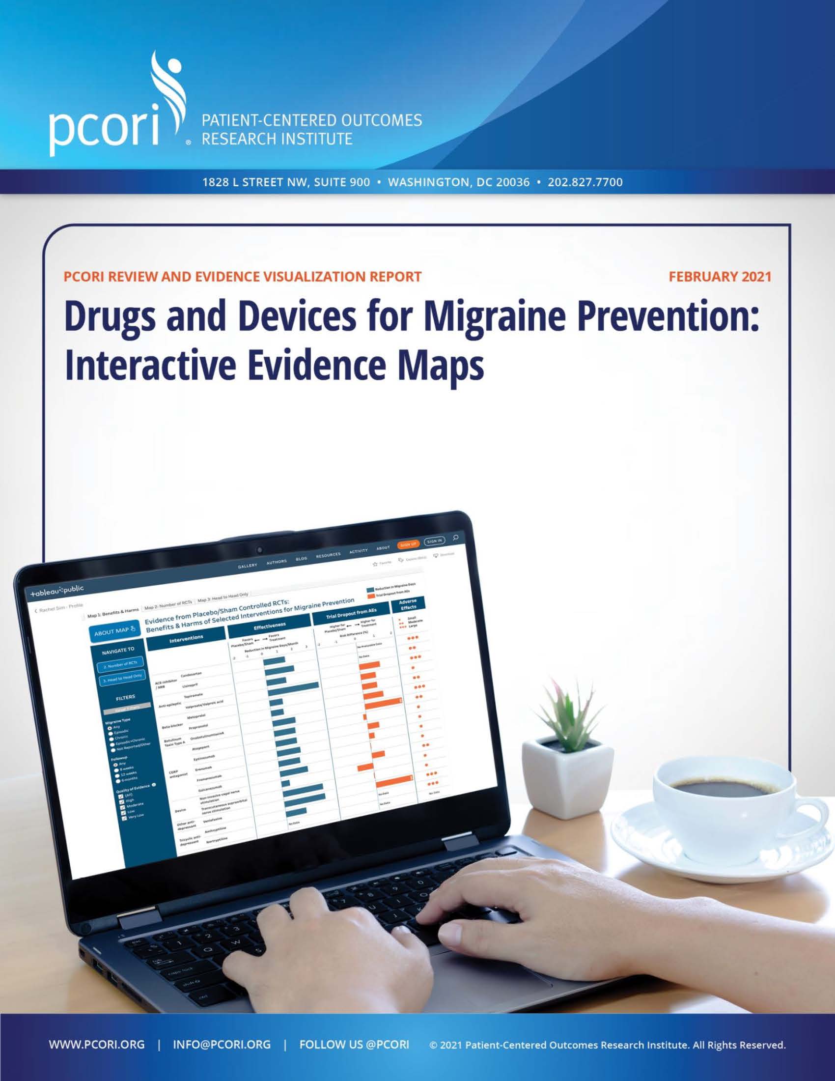 To help patients and healthcare professionals understand study results and make the most informed treatment decisions, PCORI has funded the development of an interactive evidence visualization that presents findings from research on drugs and devices for the prevention of migraine. This evidence map and visualization and corresponding report summarize the findings of a systematic rapid review representing a total of 203 randomized controlled trials (RCTs).